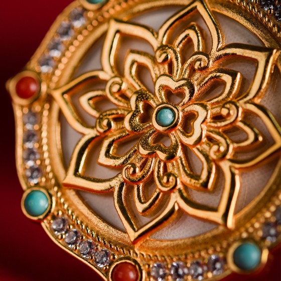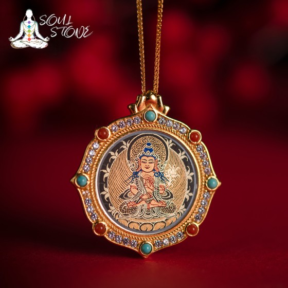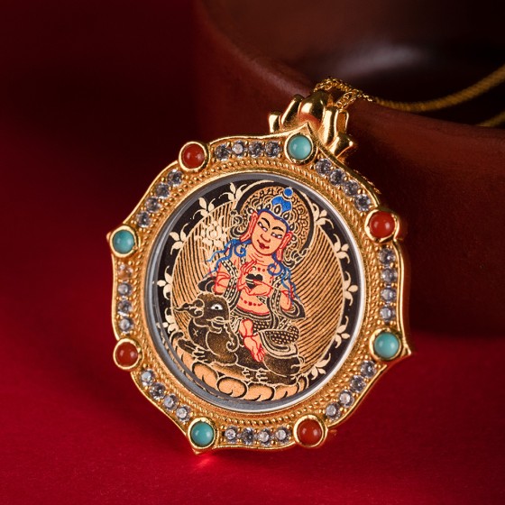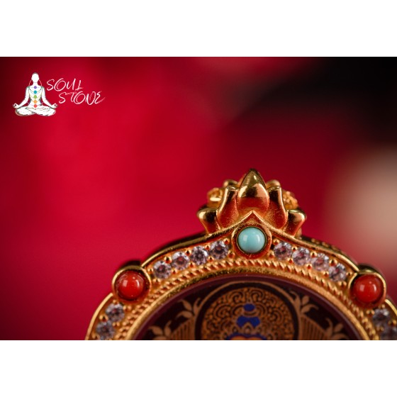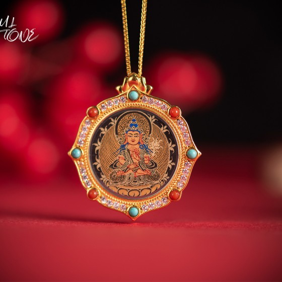 18k gold inlaid lapis lazuli round bead Passepartout pendant
