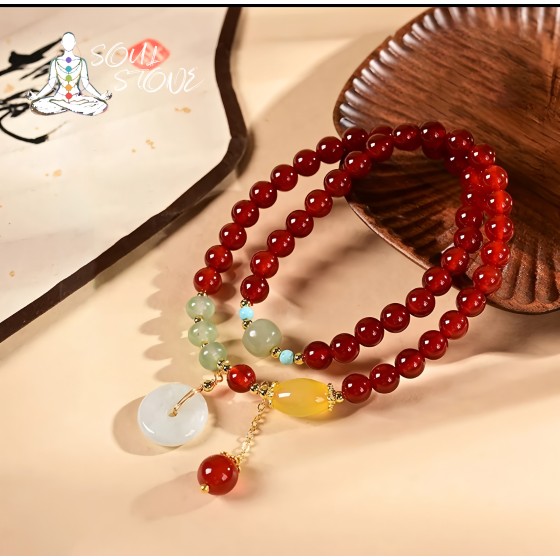 Red agate Five-Way God of Wealth DIY Design single-ring bracelet