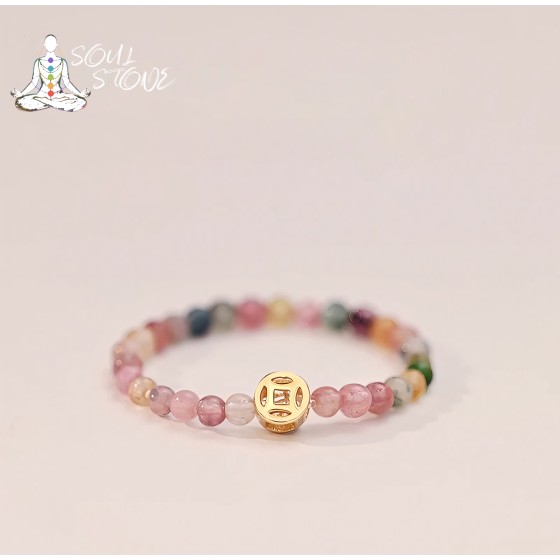 925 sterling silver natural tourmaline ring for girls sweet retro 2025 new round beads coin fashion elastic finger