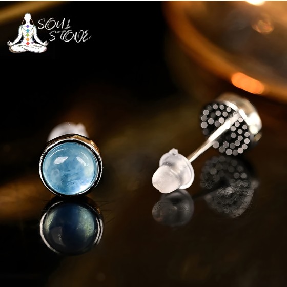 S925 silver inlaid aquamarine ear hook round beads simple earrings...