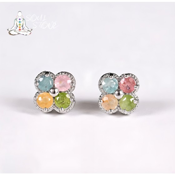 Tourmaline earrings, simple small flower earrings, versatile accessories