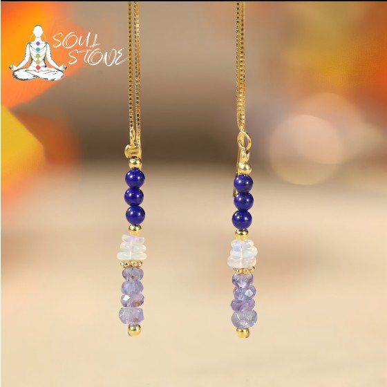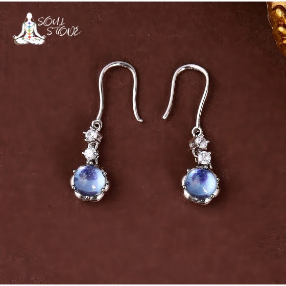 Natural lapis lazuli earrings, earrings, earrings, women's silver inlaid adjustable tanzanite, exquisite and versatile
