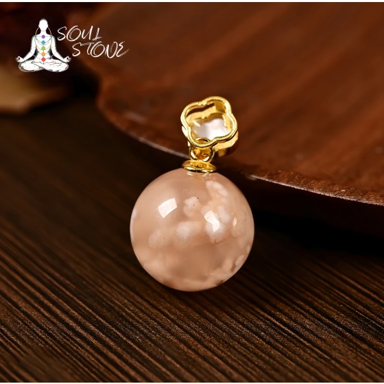 S925 silver inlaid cherry blossom agate single bead pendant
