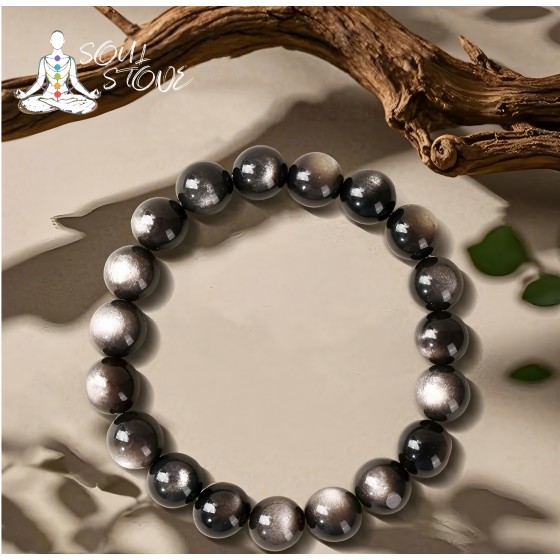 Silver obsidian natural silver eye obsidian bracelet couple bracelet birthday gift simple and versatile for men and women
