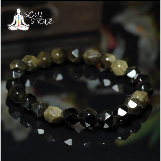 Natural obsidian bead-cut bracelet single-circle men's and women's Internet celebrity hits