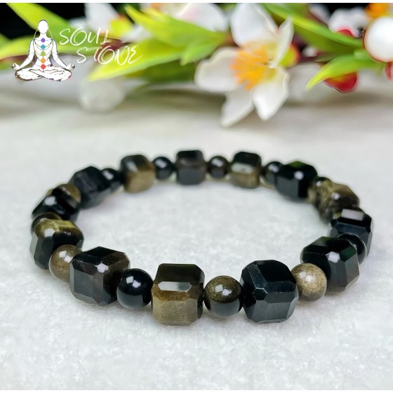 Natural obsidian sugar cube cut bracelet single circle male and female Internet celebrity hit
