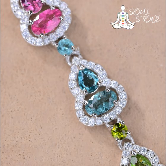 Natural tourmaline colored macaron tourmaline gourd silver bracelet, light luxury high-end bracelet