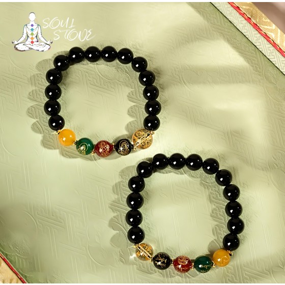Black agate Five-Way God of Wealth DIY Design single-ring bracelet